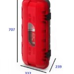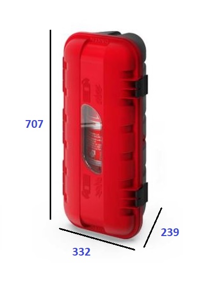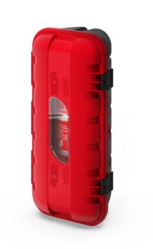 Cajón para extintor de termoplástico moldeado por inyección de bajo peso.