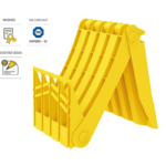 Calzo de plástico para inmovilizar vehículos , plegable para mayor facilidad de transporte.