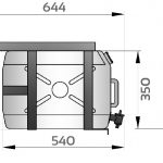 Depósito con forma rectangular de 213 mm de ancho y 540 mm de largo con capacidad para 25L.
