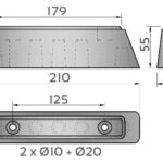 Tope de goma 210x50x55 con 2 ojales de D:10 .